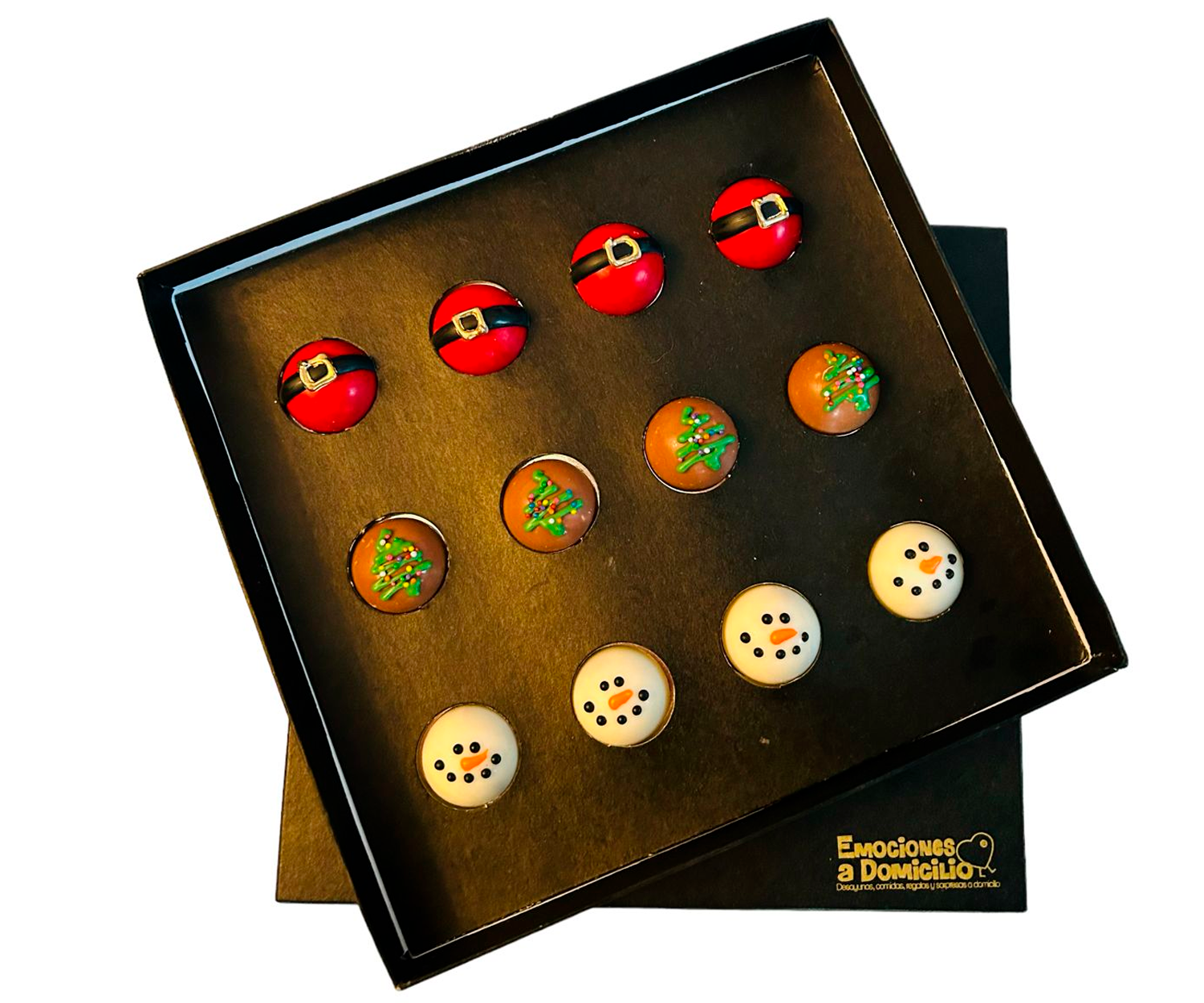 - 12 piezas de galleta con malvavisco cubiertas y decoradas con chocolate