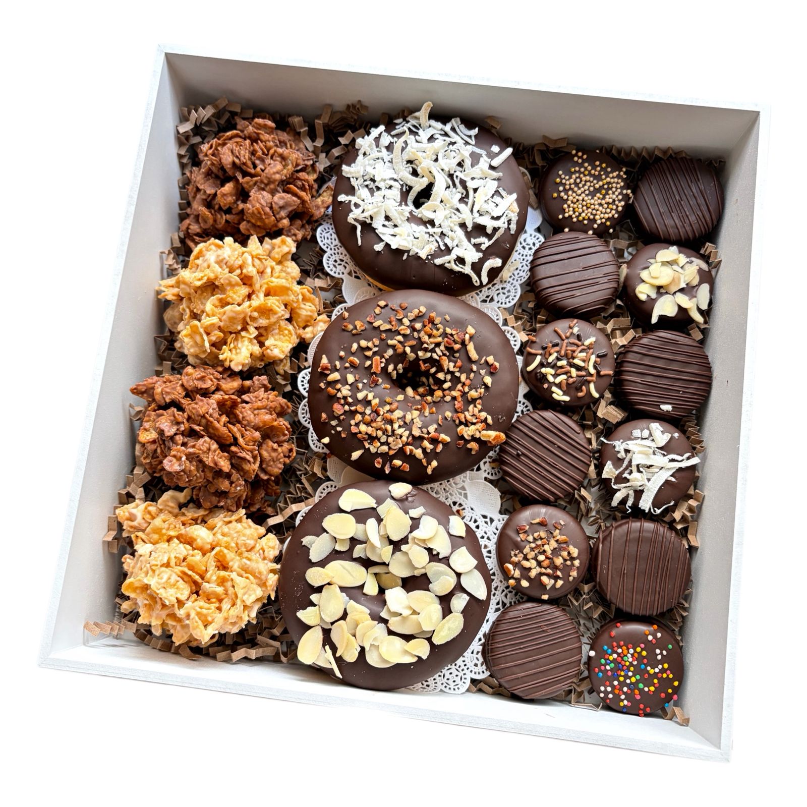 - 4 Donas cubiertas de chocolate con mensaje personalizado (especificar mensaje por WhatsApp o en comentarios)